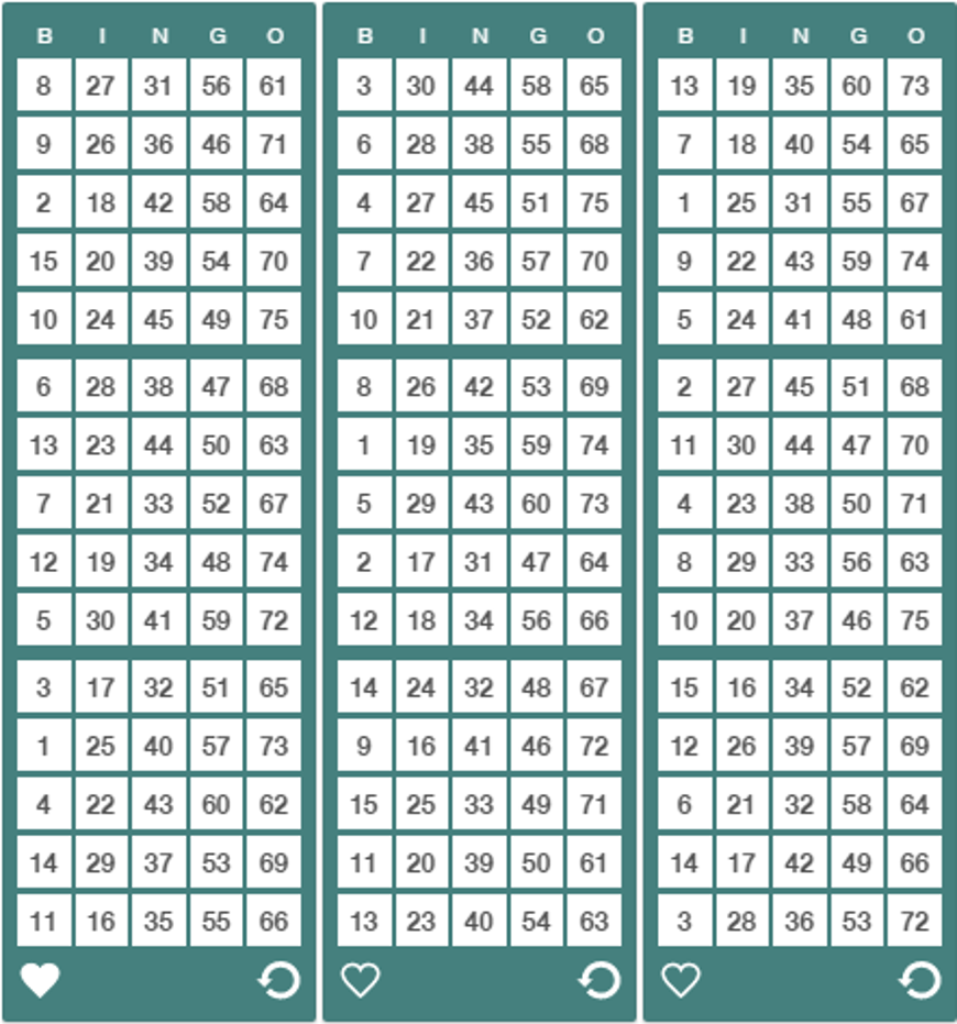 Beim 75-Zahlen-Bingo wird eine 5x5 Reihen Bingo-Karte verwendet. Jede Bingo-Karte hat somit 25 unterschiedliche Zahlen.