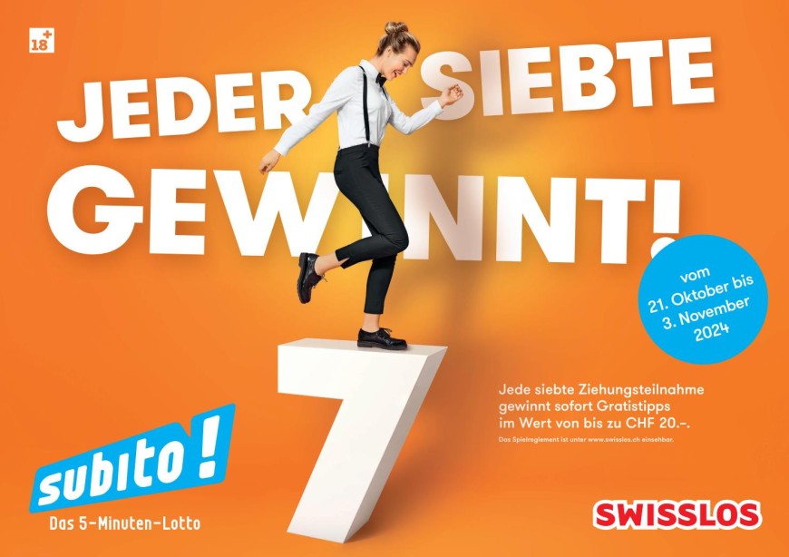 Vom 21.10. bis maximal 03.11.2024 gewinnt jede siebte Ziehungsteilnahme sofort Gratistipps im Wert von bis zu CHF 20.-.