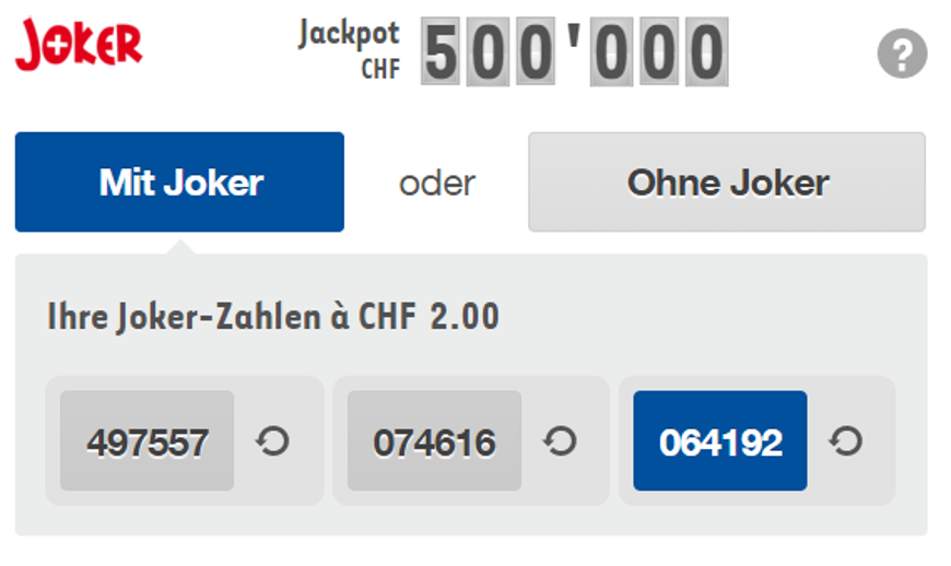 Sie können gleichzeitig bis zu drei Joker-Zahlen spielen. Der Preis pro Joker-Zahl beträgt 2 Franken.