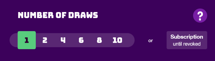 2. Select how many successive draws you want to participate in with your picks. 1, 2, 4, 6, 8 or 10 draws.