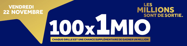 Déjà le 3 février 2023 ainsi que le 21 janvier 2022, un tirage au sort de 100 x 1 million a eu lieu parmi tous les participants à l’EuroMillions. Parmi les gagnants et gagnantes de ces tirages, dix* vivaient en Suisse. Participez et vous-aussi, posez une option sur 100 x 1 million supplémentaires au tirage du 3 février 2023.