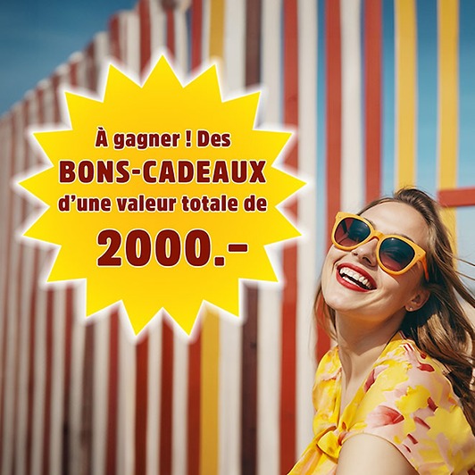 Toutes nos félicitations aux heureux gagnants. Ils recevront chacun un bon-cadeau internet resp. un lot de billets d’une valeur de CHF 250.-. Bonne chance!