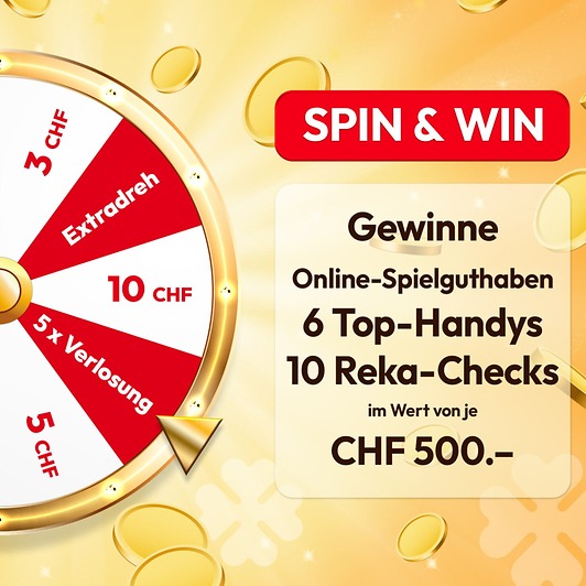 Notre roue de la fortune «SPIN & WIN» a tourné – et les heureux gagnants sont désormais connus ! 6 smartphones haut de gamme et 10 lots de chèques Reka d’une valeur de 500 francs chacun ont été tirés au sort – les gagnants ont déjà été informés.