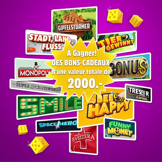 Découvrez par le jeu quel type de joueur vous êtes; participez au tirage au sort et gagnez avec un peu de chance des bons-cadeaux Swisslos d’une valeur comprise entre 50 et 200 francs.