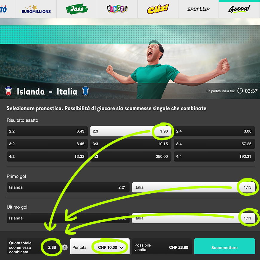 - La puntata per ogni pronostico varia tra 1 e 150 franchi.