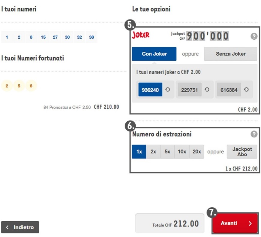 Per saperne di più sul Joker consulta la voce del menu corrispondente. - Selezionare per quante estrazioni consecutive ripetere gli stessi pronostici da sistema, oppure stipulare subito un Abo jackpot.